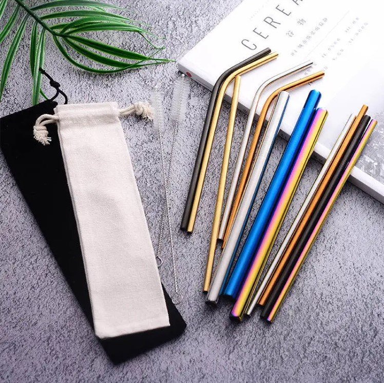 Daugkartinio naudojimo spalvoti, ekologiški, metaliniai, nerūdijančio plieno gėrimų šiaudeliai